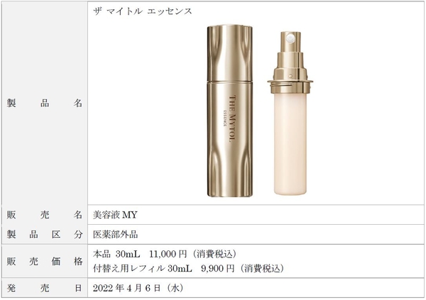 大正製薬株式会社[本社:東京都豊島区 社長:上原 茂](以下、当社)は、この度、新しくエイジングケア※2ブランド「THE MYTOL(ザ マイトル)」を立ち上げ、そのブランド第一弾として、美しくハリ・透明感※1のある肌へ導く先行美容液「THE MYTOL ESSENCE(ザ マイトル エッセンス)」を4月6日(水)よりTAISHO BEAUTY ONLINEにて発売いたします。