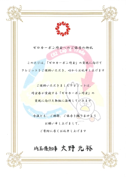 図書印刷は、「ゼロカーボン埼玉」へのカーボンオフセットクレジット寄付しました