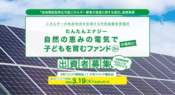 市民協働でエネルギーの地産地消「たんたんエナジー 自然の恵みの電気で子どもを育むファンド3号@福知山」3月19日出資募集開始! 募集開始と同日に説明会も開催