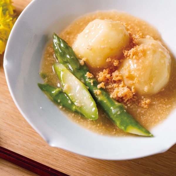 梅のさっぱりとした味わいに、かつお節の旨みや爽やかな紫蘇が香る「梅なめ茸」。お好みの野菜を冷しゃぶで包み、仕上げに「梅なめ茸」ソースをたっぷりとかければ、梅のさわやかな香りとほど良い酸味が食欲をそそる一品の完成です!