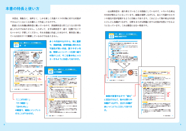 教科書を一通り終えていることを前提にしているので、細胞を復習しながらも、あえて代謝やホルモンや進化の話が登場するなど、いろいろな単元の内容が絡むようになっています。