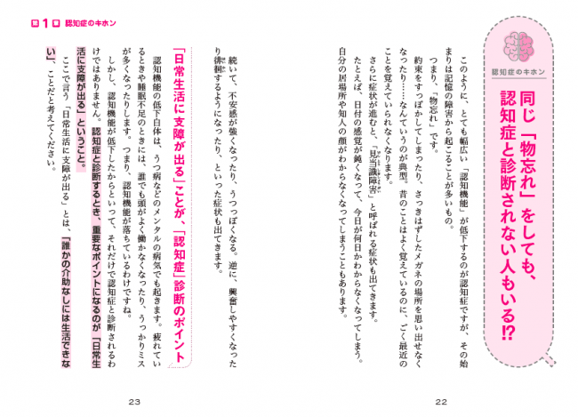 本書では、まず、認知症とは何かを正しく知っていただくための「認知症のキホン」を解説。そして、正しい予防法である「カキクケコ+チャレンジ」のメソッドを、さまざまなエビデンスと共に紹介します。