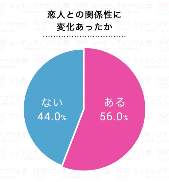 恋人がいる男女のうち、恋人との関係性に変化があった人は6割近くもいました。