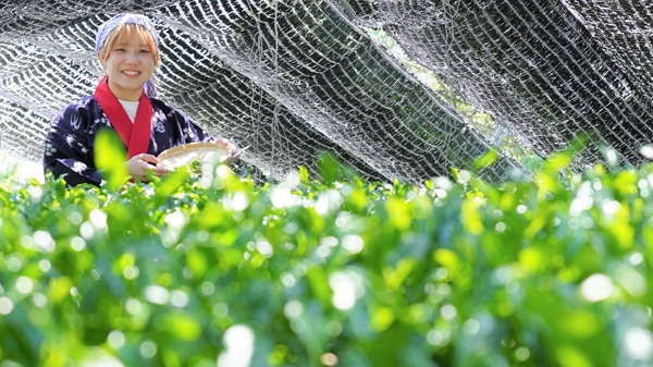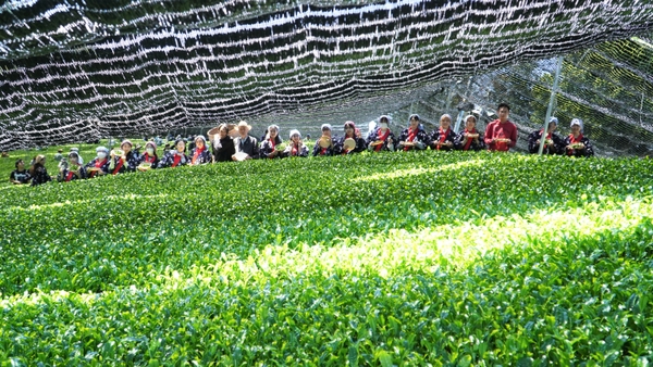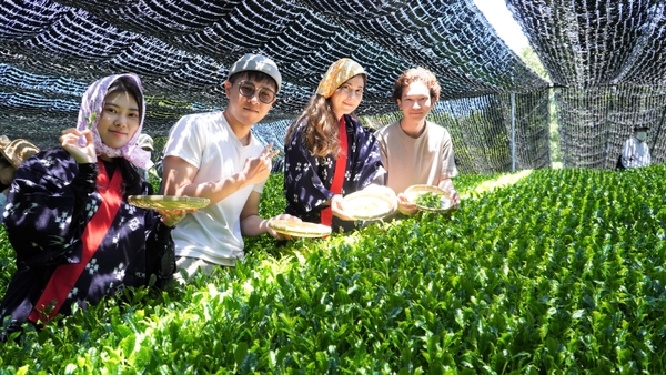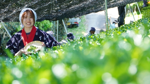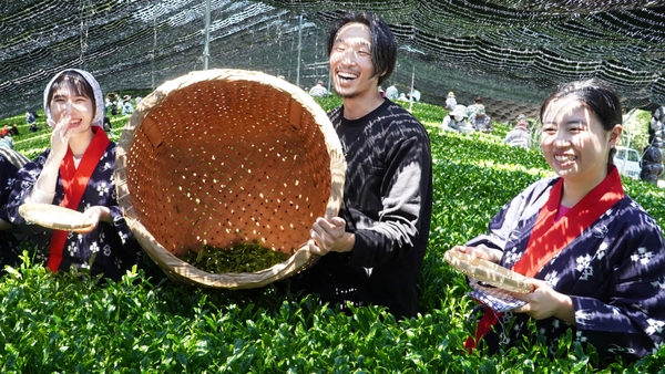 大阪国際大学・大阪国際大学短期大学部の学生が高級ブランド茶を生産する京都府南山城村中窪製茶園で出品茶摘みに協力