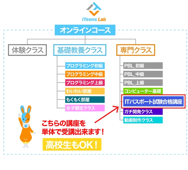 子どもプログラミング教室ITeens Labのオンラインコースの講座の一部としてITパスポート取得クラスを新設。学習塾・職業訓練・キッズプログラミングなどの経験を活かし小学生から国家資格取得を目指します。