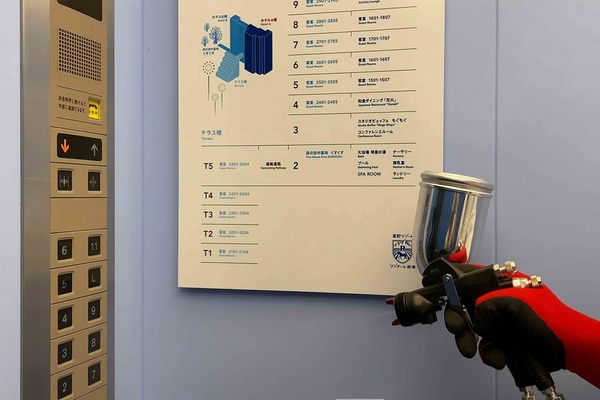 日本の伝統や文化を活かしたおもてなしを追求し、国内外に45施設を運営する星野リゾートは、「最高水準のコロナ対策宣言」のもと、衛生管理と3密回避対策を行っています。エレベーターでも対策を徹底するべく、人の手が触れるボタンに、国際空港でも採用されている、感染能力を無力化する特殊被膜ナノコーティング剤「メディカルナノコート」(*1)をエレベーターがある国内の全施設で塗布しました。また、一度に利用できる人数の制限やお客様同士が近距離で向き合わないような工夫もしています。お客様に安心してご滞在いただけるよう、今後も対策を徹底してまいります。