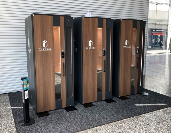 「CHATBOX(チャットボックス)」(https://waim-group.co.jp/chatbox/ ))は、1分単位で利用可能なテレワーク用個室ブースです。