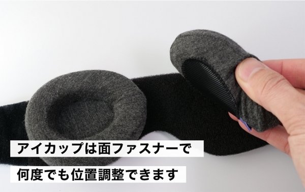 でもマンタ スリープマスクなら目の位置に合わせてアイカップの位置を調整可能で、どんな人の輪郭にもジャストフィット。ちょうどよい位置に何度でも動かせます。【米国特許出願中】