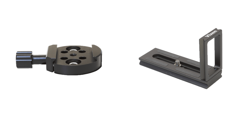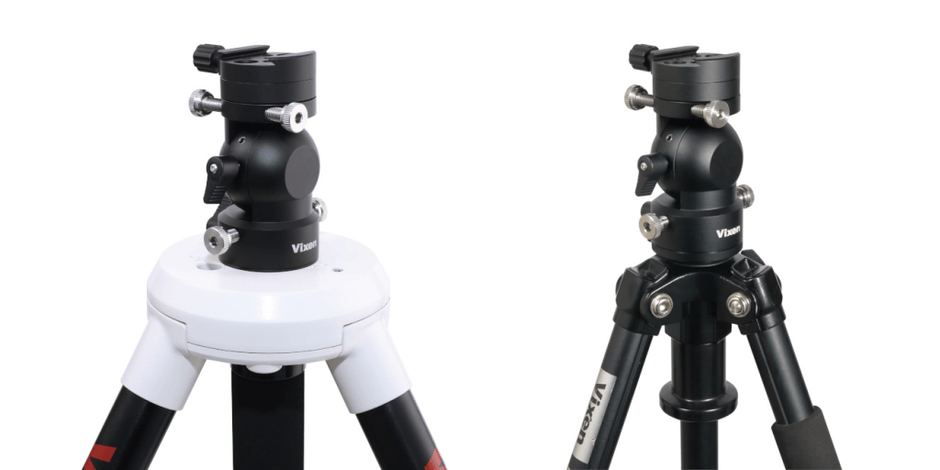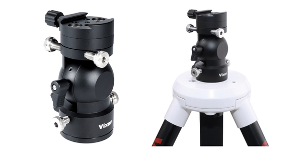 またカメラ三脚用アダプタープレート(本体組込済)を付属の天体望遠鏡用三脚アダプターと交換することで、ビクセン製天体望遠鏡用三脚に搭載できます。天体望遠鏡用三脚のAPP-TL30、ASG-CB90、SXG-HAL130、SXG-P85DX、SXGハーフピラーに対応しています。