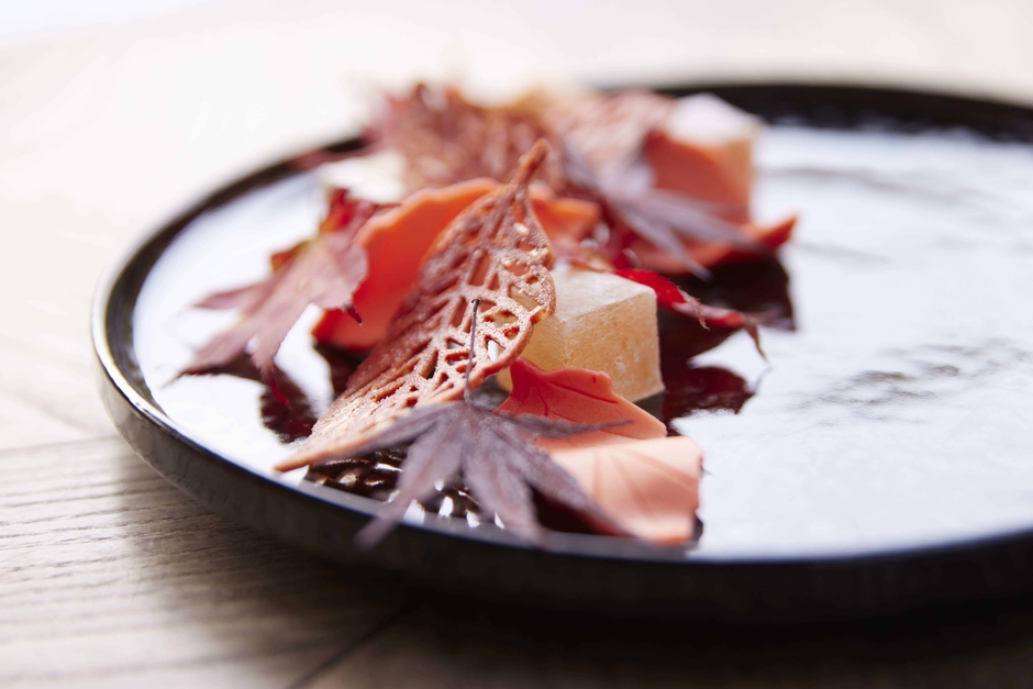 カクテルと共にさらに秋を体感できるよう、渓流で見られるもみじの形をしたフィンガーフードを提供します。星のような形の「トチノキ」の葉や、ハート形の「カツラ」の葉を模したクッキーをはじめ、秋を感じられるお菓子を盛り合わせたプレートです。紅葉カクテルとフィンガーフードを味わい、渓流と紅葉を眺めながら豊かな時間を過ごすことができます。