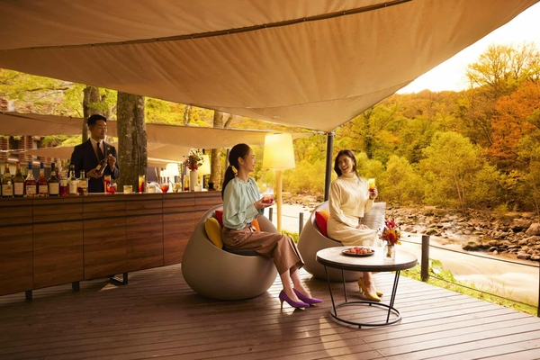奥入瀬(おいらせ)渓流沿いに建つ唯一のリゾートホテル「星野リゾート 奥入瀬渓流ホテル」では、2022年10月1日、錦秋(きんしゅう)の奥入瀬渓流でせせらぎと紅葉を堪能できる「渓流紅葉ラウンジ」が誕生します。奥入瀬渓流が流れるホテル周辺のエリアは、例年10月中旬から11月初旬にかけて紅葉のピークを迎え、約55万人(*1)が訪れる、世界屈指の紅葉の名所です。当ラウンジでは、大自然が作り出す美しい紅葉と渓流が織りなす絶景を、混雑を気にすることなくゆっくりと堪能できます。また、この絶景とともに楽しめる、紅葉をイメージしたカクテルとフィンガーフードを提供します。 *1 令和2年青森県観光入込客統計