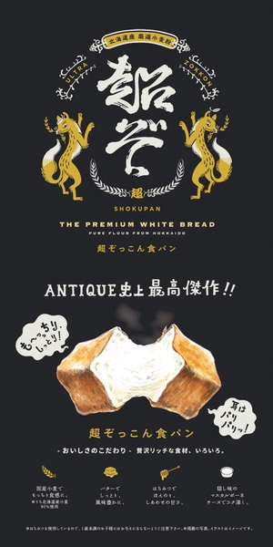 そんな従来のおいしさに加え、贅沢にマスカルポーネチーズを使うことによりコクと深みをさらにアップさせ、はちみつ、バターで風味豊かに仕上げた「"超”ぞっこん食パン」が誕生しました。口に含んだ瞬間、とろけるような口どけを味わえるアンティーク史上最高傑作の食パンです。