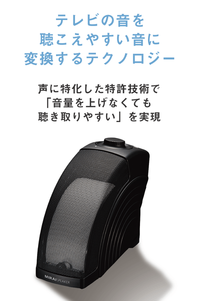 世界初の曲面サウンド搭載 テレビの音を聴こえやすい音に変換するテレビ用「ミライスピーカー・ホーム」