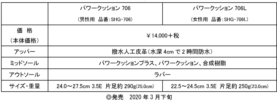 12mの高さから落とした生卵が、割れずに6m以上跳ね返る「パワークッション®プラス」搭載 クッション性×フィット性で快適な履き心地のスパイクレスモデル 「パワークッション706(男性用)・706L(女性用)」2020年3月下旬より発売