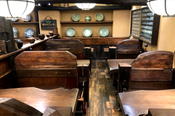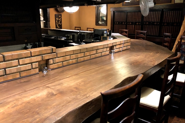 休業の間に内装を一部改装しました。古くなっていたテーブルを全て削り、磨き、塗装をし直しました。以前より濃い色の仕上げにしたので、落ち着いた雰囲気になりました。