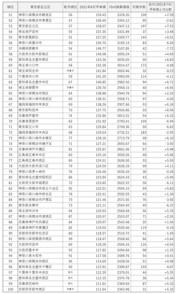 ■全国市区町村 マンション坪単価ランキング100(2021年8月)