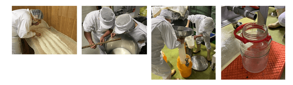 今回、初めて神戸の本社で行われる「白鶴 銀座 天空農園の酒」の大吟醸造りに参加しました。製麹(麹米を作る)の工程では、蔵に泊まり込みで夜通しの作業を経験しました。仕込みは100Lタンクという小さなタンクで、全て手作業で行います。わずかなお米から仕込むため、1滴たりとも無駄にできない貴重なお酒であることを改めて実感しました。