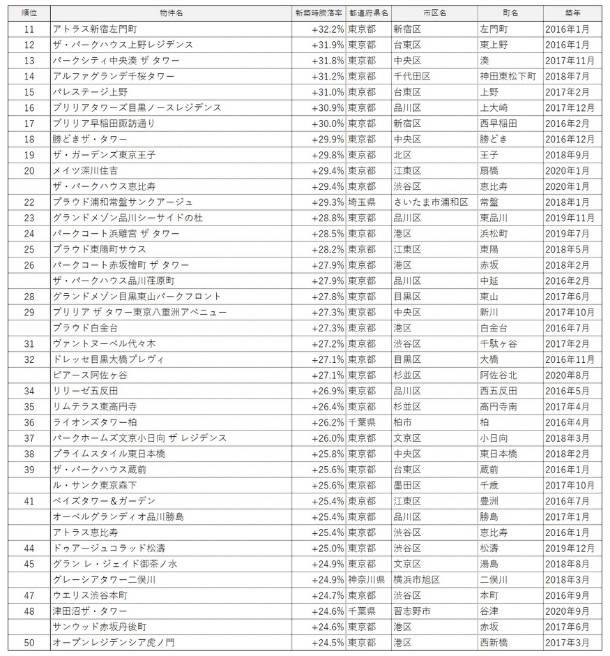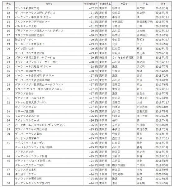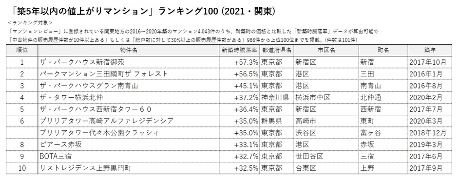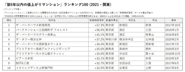 ■「築5年以内の値上がりマンション」ランキング100(2021・関東)*1
