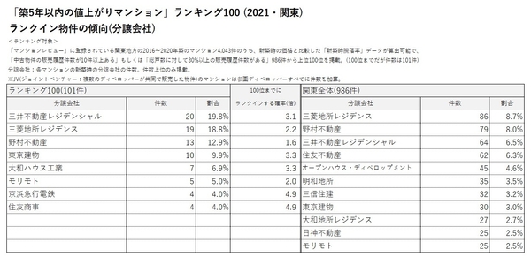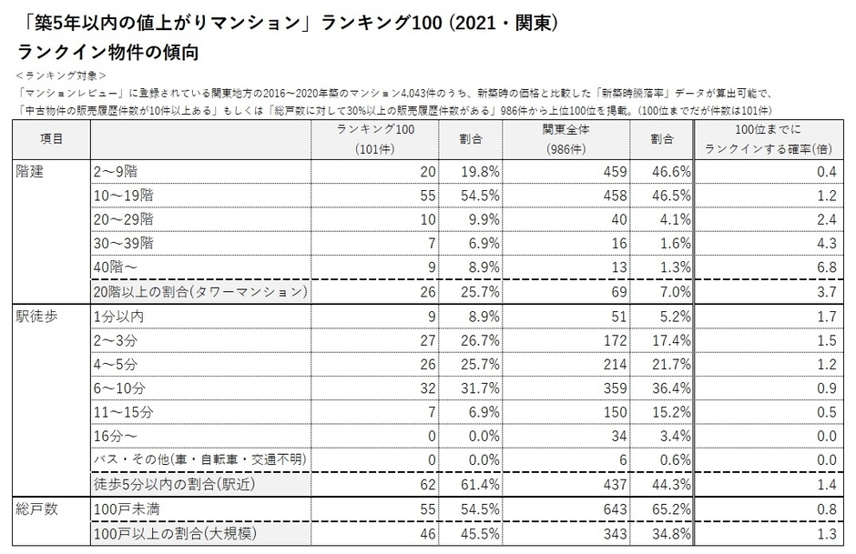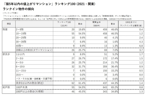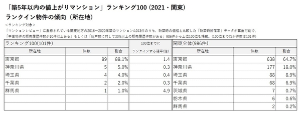 ■「築5年以内の値上がりマンション」ランキング100(2021・関東) ランクイン物件の傾向 2