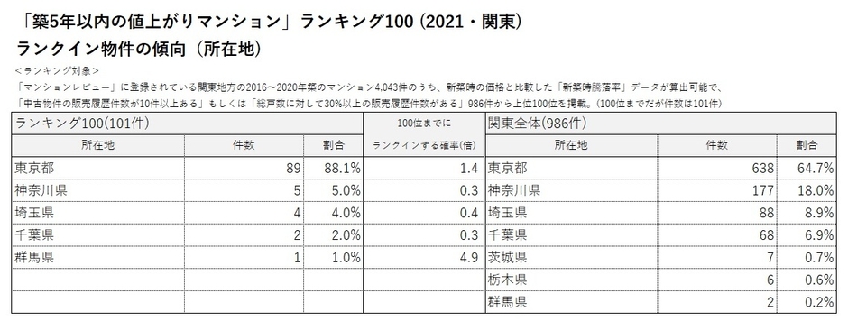 ■「築5年以内の値上がりマンション」ランキング100(2021・関東) ランクイン物件の傾向 1