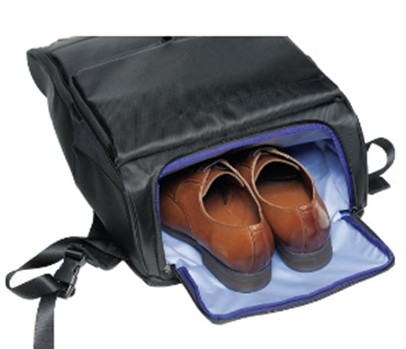 『エアロ3WAYビズバッグ』では、背当て面の4箇所にパッドを装着することで上下・左右に通気路を確保し、背中の蒸れを軽減します。また、「バックパック」と「手提げ」に加えて、付属のキャリーケース用ストラップを取り付けることで「キャリーオンバッグ」としても使用できる3WAY仕様となっています。
