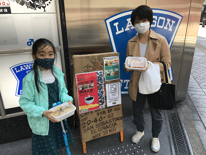 少しでも協力できればと買いに来てくれた弁当販売第1号のお客様。涙が出るほどうれしかった。