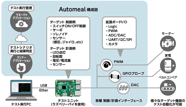 「Automeal」は、ラズパイを使った組込み向けのテスト自動化ソリューションです。