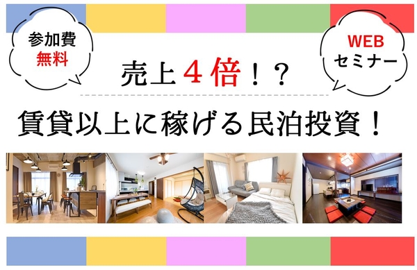 【参加無料】売上4倍!?賃貸以上に稼げる民泊投資!【WEBセミナー】