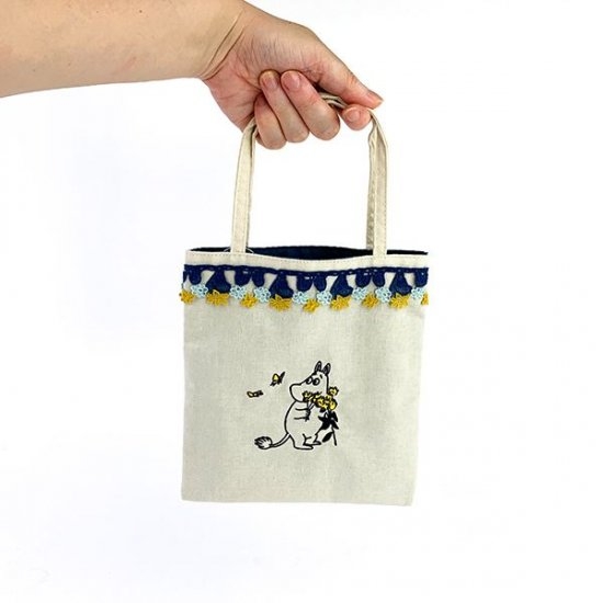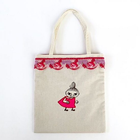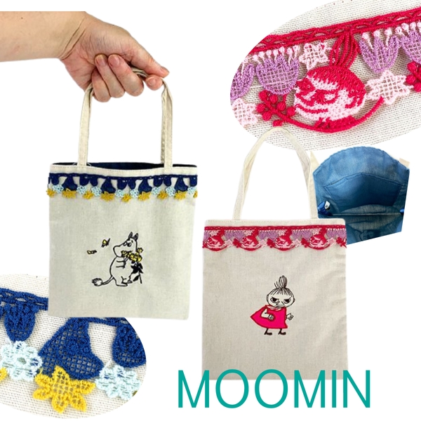 レースと刺繍とナチュラルは裏地。好きな要素しかない丁度いいサイズ。大人カワイイムーミン&リトルミィのミニトートバッグです。
