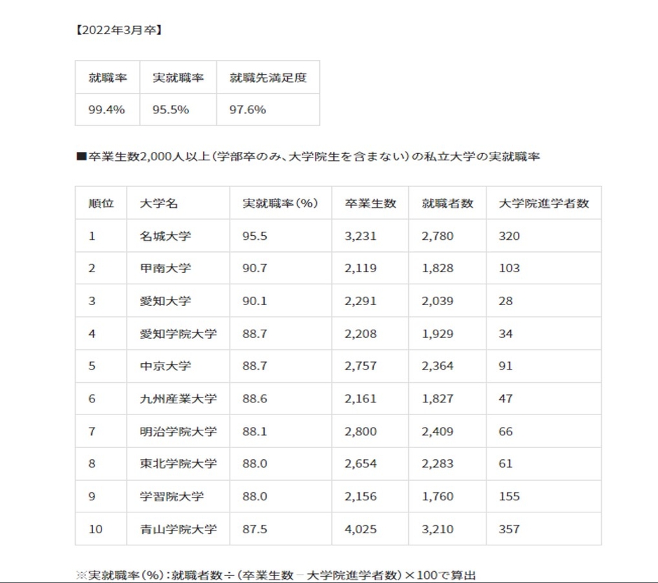 【名城大学】大規模私大 実就職率ランキング 12年連続 全国No.1