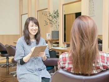 気になりだした白髪を美しくカバーするために、ひとりひとりに合わせた丁寧なカウンセリングをおこない、あなたの「こうなりたい」を上手に引き出してくれます。白髪を染めながら色味も楽しめますよ。