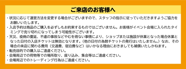 6月27日(日)以降はフリー入店となりますが、混雑状況により入店規制や入店整理券を配布させていただく可能性がございます。何卒ご理解のほどよろしくお願いいたします。