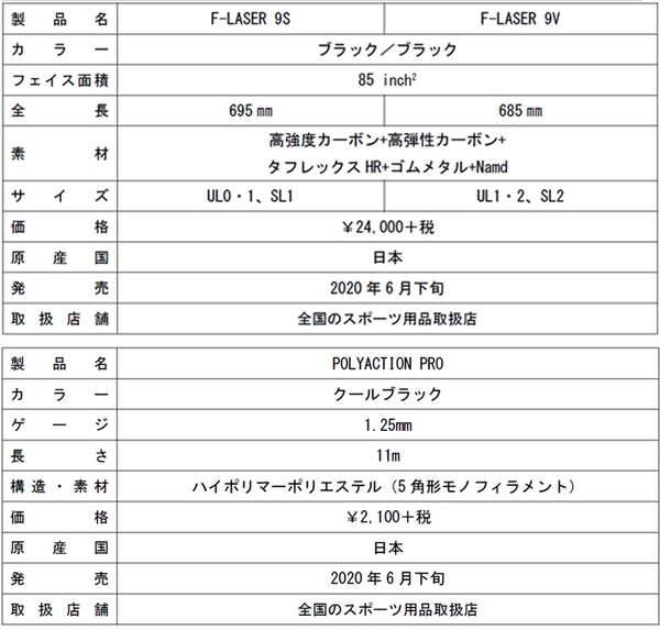 ヨネックス株式会社(代表取締役社長:林田 草樹)は、日本人初のプロソフトテニスプレーヤー・船水颯人(ヨネックス)との共同開発で生まれた上級者向けラケット「F-LASER(エフレーザー) 9S・9V」の新デザインと、新製品ストリング「POLYACTION PRO(ポリアクション プロ)」を2020年6月下旬より発売いたします。