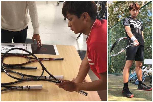 『POLYACTION PRO』はラケットと同じ黒に金色の印字でテンションが上がりますね。柔らかさの中にもしっかりとした手応えがあり、より速いボールが打てるストリングだと思います。『POLYACTION PRO』を使うと、相手のボールの威力を利用して返球できるので、またひとつ展開が増えて、試合を優位に進められます。
