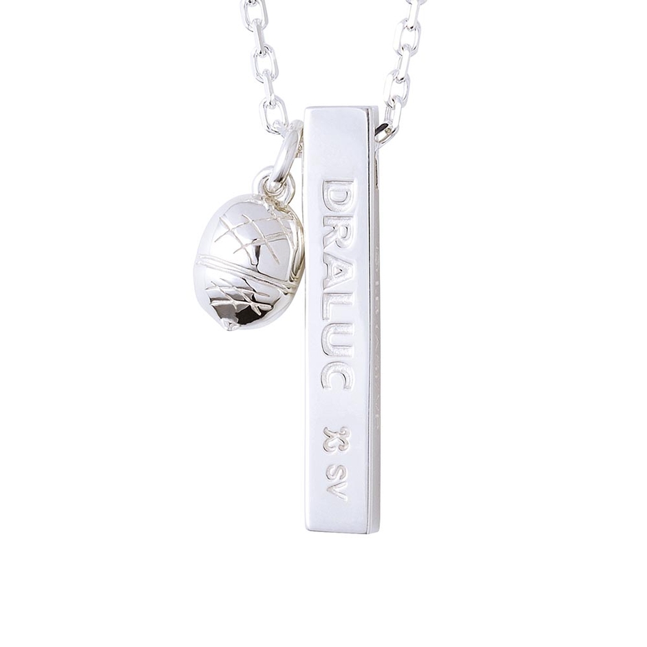 シンプルなバータイプのトップに、コスチュームの模様とイメージカラーストーンをセット。丸みのあるジョンの立体チャームが愛らしいデザインです。裏面には名前を刻印しました。
