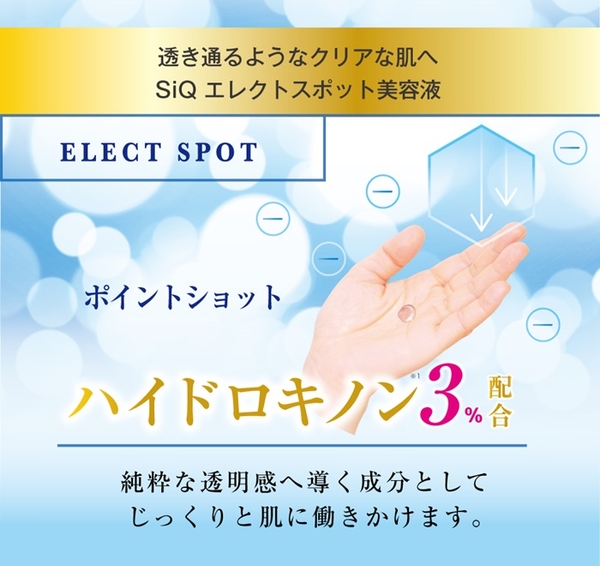 肌本来の美しさを引き出すハイドロキノン配合。 気になるところを狙い撃ちし、エレクトスポット美容液でピンポイント集中ケア。