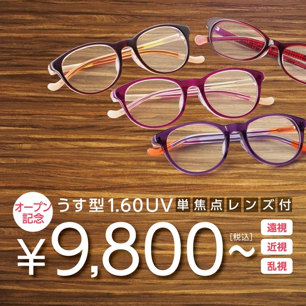 薄型1.60UV 単焦点レンズ付き 9,800円~(税込)