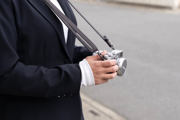 最大の特長はオリジナルの1秒で長さ調整ができる「クイックアジャスター機能」。この機能によって、ストラップを身につけた状態でも瞬時に長さ調整でき、撮影シーンも逃しません。