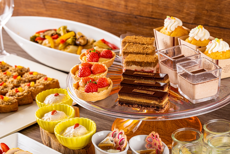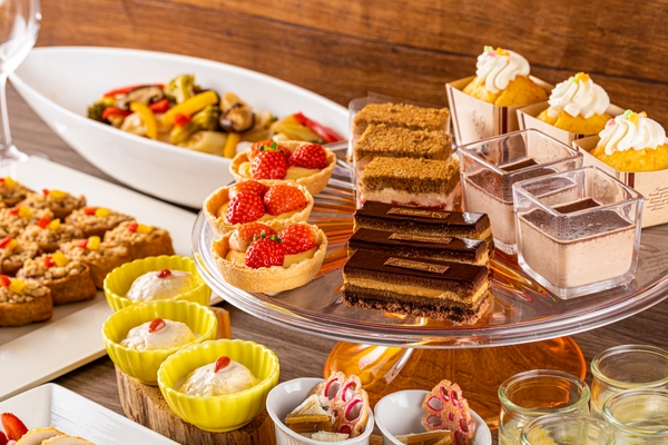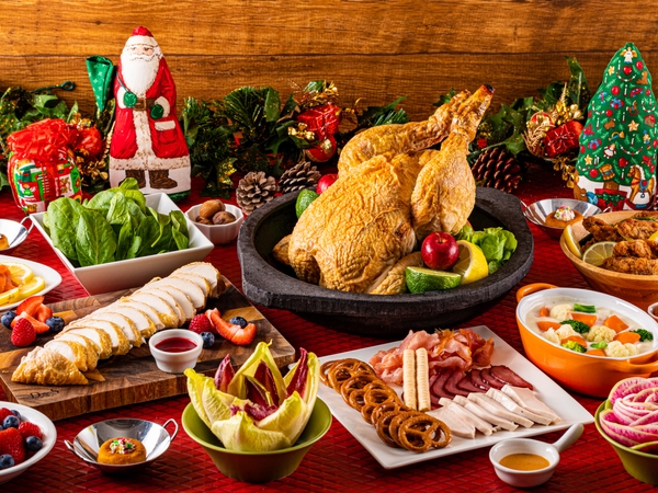 前菜からデザートまで、自然の恵みに溢れたシェフこだわりのクリスマスブッフェをお届けいたします。ブッフェコーナーには、ローストビーフやターキーローストなど、伝統的なクリスマスのお料理が華やかに。メイン料理は、しずおか和牛や伊豆鹿、沼津港より届く季節魚など、6種よりお好きな1品をお選び下さい。伊豆のだいだいを使った柑橘ソースや伊豆椎茸と赤ワインのソースが季節のアクセントを添えます。