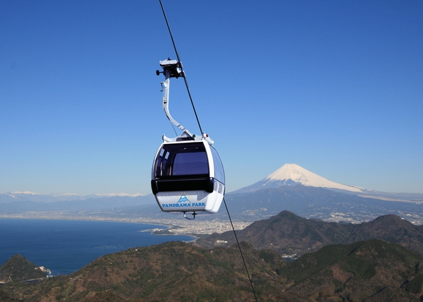 富士山や駿河湾を一望する絶景が広がる伊豆の国パノマパーク。山頂までの約7分、ロープウェイで空中散歩がお楽しみいただけます。山頂には、絶景を望みながら足湯ができる場所もあります。