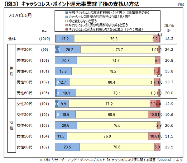 ポイント還元終了後にキャッシュレス決済が減ると考える人はわずか6%。(図3)