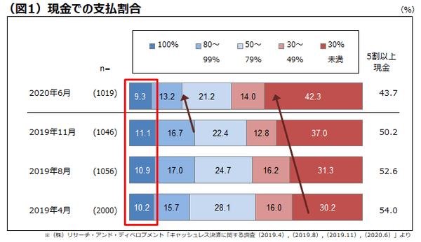 今回の調査から、この半年で確実にキャッシュレス決済利用が進んだと言えます。消費税増税に合わせて導入されたポイント還元事業などにより、素地が整っていたことは言うまでもありませんが、コロナ禍が利用促進に影響したことも確かです。「現金を触りたくない」といった感染への直接的な不安もありますが、キャッシュレス対応の店が増えたり、テレワークになって現金を手元に持たなくなったなど、コロナ禍での生活の変化が、買い物や支払い方法に変化をもたらし、結果としてキャッシュレス決済の利便性を実感するに至ったと考えられます。