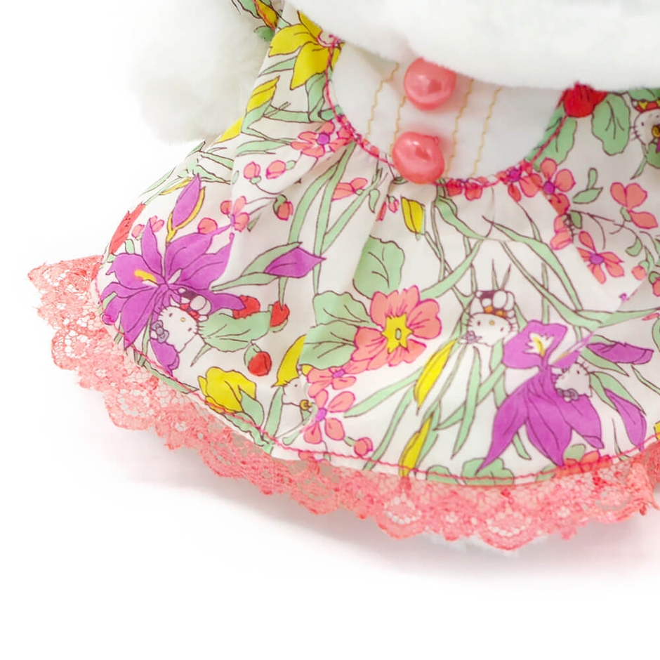 リバティ×ハローキティのぬいぐるみは、ハローキティ45周年を記念して誕生したリバティプリント柄のリボンとワンピースを着たハローキティのぬいぐるみです。(メーカー:ナカジマコーポレーション)
