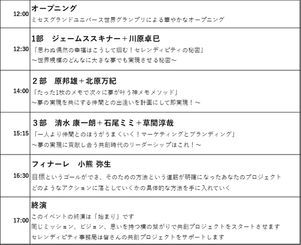 ■セレンディピティ7月9日タイムスケジュール