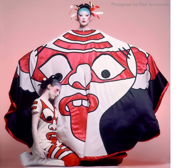 「日本の美しいものが世界でも通用することを証明したい」という寛斎の思いから生まれた寛斎のデビュー作「凧絵」(1971年)は、歌舞伎からインスパイアされた作品です。