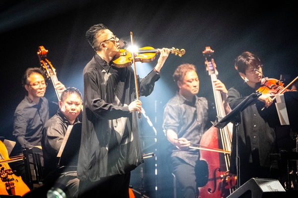 ここから本編ラストに向けて、どんどんテンションが高まる。「シーザー・パレス・ブルース」(U.K.)、「カシミール」(レッド・ツェッペリン)、そして「紫の炎」(ディープ・パープル)。演奏に呼応するかのように舞台演出も切れ味を増していく。そしてーーー「紫の炎」では至る所で火の手が上がるのであった。火を吹くクラシックコンサートを聴くのは、もちろん初めての経験である。ただ、燃え盛るステージで演奏された本作はヴィヴァルディの協奏曲のような様式美を聴かせ、それはともすればロックとクラシックを融合させようとした作曲者のリッチー・ブラックモアが企図したものと近かったかもしれない。オープニングと同様、呆気にとられながら本編は終了した。