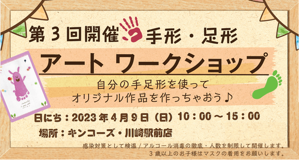 キンコーズ・ジャパン株式会社(本社:東京都港区、代表取締役社長:渡辺 浩基、以下 キンコーズ)は、キンコーズ・川崎駅前店で、2023年4月9日(日)に「第3回開催 手形・足形アートワークショップ 自分の手足形を使ってオリジナル作品を作っちゃおう♪」を開催します。
