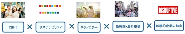 これまでにない世界的な常識や価値観、仕組み等を形成し、将来的な事業環境に大きな影響を与えるトレンドを、①Z世代、②サステナビリティ、③テクノロジー、④新興国を含む海外市場、⑤破壊的企業の動向と定義し、オリジナルコンテンツの整備・拡充を目指します。