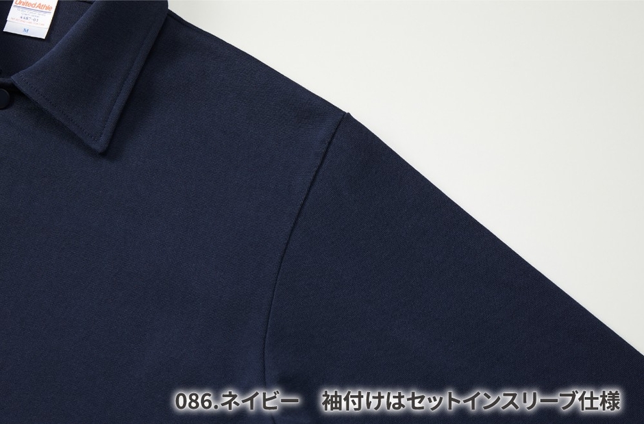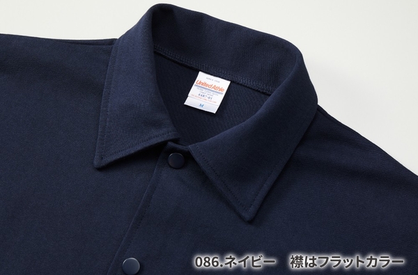 綿100%で作られた着心地抜群のコーチジャケット。細番手の糸を採用した生地は、へたりにくく布帛のような密度を実現。さらに、ザラ感のあるオープンエンド糸なので、洗いこむほどに風合いが増すアメリカンな一着に仕上がりました。金属製のドットボタンやシャーリング仕様の袖といったディテールも見どころ。綿素材かつ一重なので加工の制限も少なく、多色プリントや袖へのプリントも自由自在です。