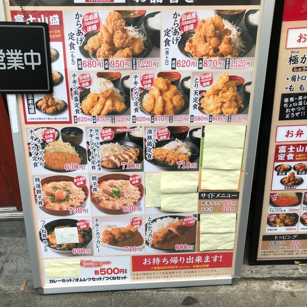鶏天定食 並580円・大880円・富士山盛1,100円